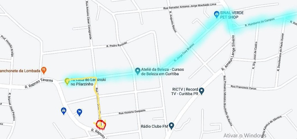 Encontro das ruas onde Leminski morou no Pilarzinho/Google MapsQuadras acima de onde me isolo, arranca a primeira rua onde Leminski morou no bairro, a Jorge Brahim Cury, 757. Ela se precipita da Amauri Lange Silvério, na qual a Humberto de Campos da crônica passada havia se agarrado, lembram-se, mascaradas, mascarados leitores? Em declive, a Brahim escorre entre calçadas descuradas até ser obrigada a curvar-se à direita e ter de prender o ar para encarar o aclive brabo antes de alcançar o seu termo, duas quadras à frente, na temerária e longa Raposo Tavares. Neste extremo, dizem, estava a casa do poeta afro-polaco e da Alice Ruiz.