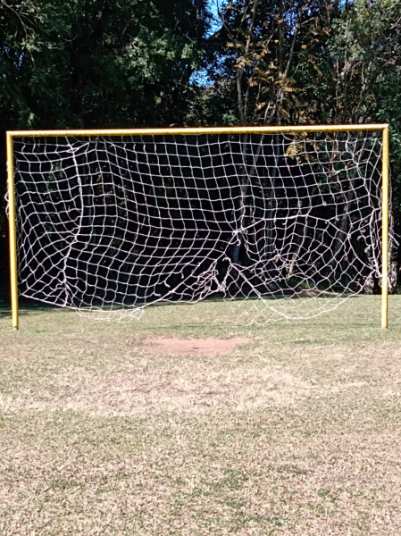 Caí no campinho de futebol. Um alambrado de mata escora uma das laterais do campo. As traves piscam amarelas nos extremos do gramado. Um gol sem rede; outro, com. Neste, a rede faz arte — moderna –, desconstruindo-se à força de rasgos e remendos. E desnorteia o artilheiro, que perde o senso e chuta pras estrelas.
